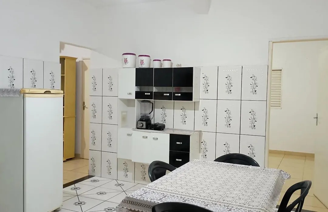 Viva Sobradinho - Pensao E Hospedagem Em Sao Thome Das Letras villa offers self-catering amenities, such as a full kitchen, and an outdoor dining area for guests' convenience. The kitchen also offers tea and coffee making facilities, a refrigerator, and an oven.